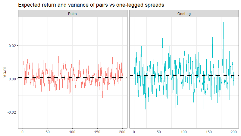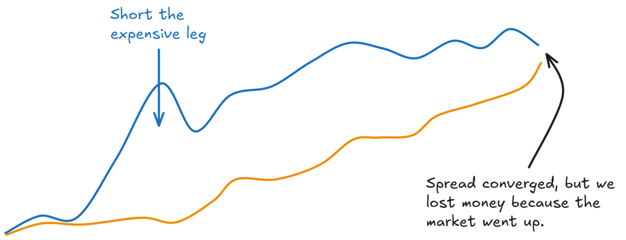If you only traded the mispriced leg, you’d have higher expected returns (lower costs), but much higher variance. You’re now net long or net short the market.