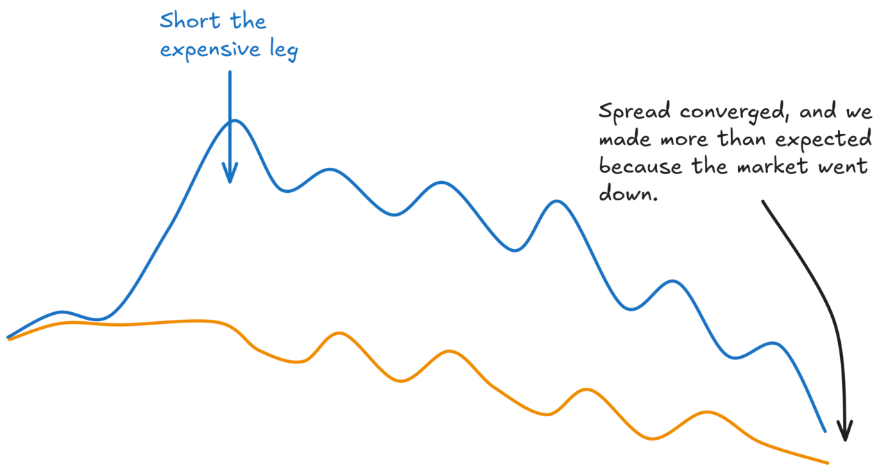 The natural next step is to start trading them the traditional way. Long the cheap leg, short the expensive leg, wait for convergence, close.